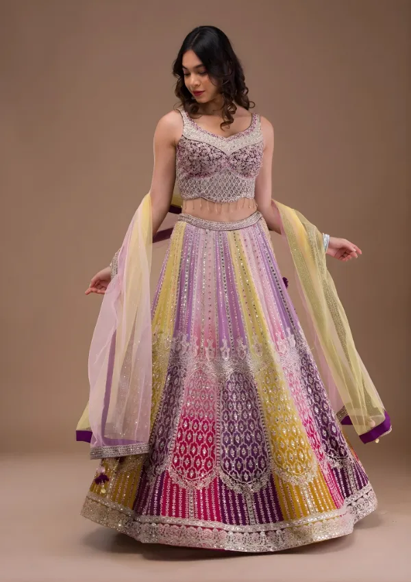 Lavender Mirrorwork Georgette Readymade Lehenga