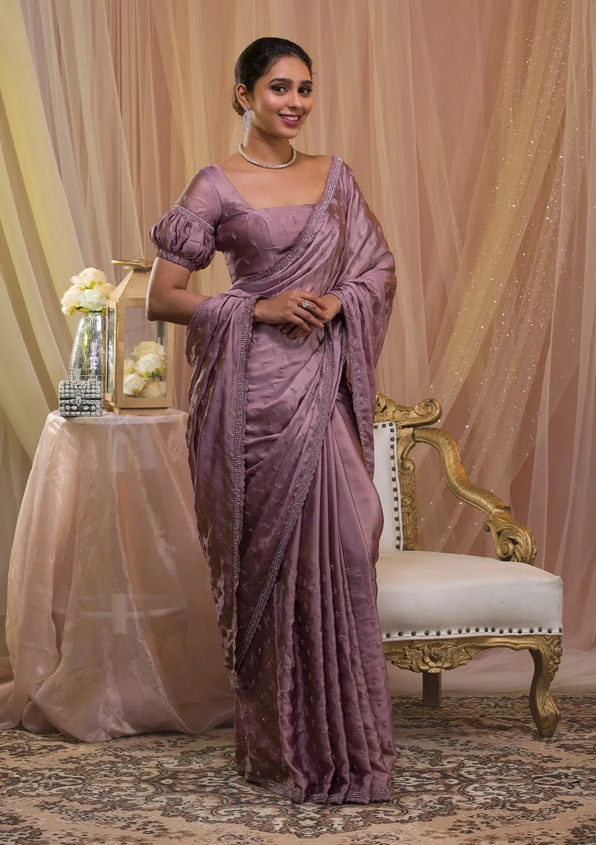 – Lavender Saree in Crepe fabric