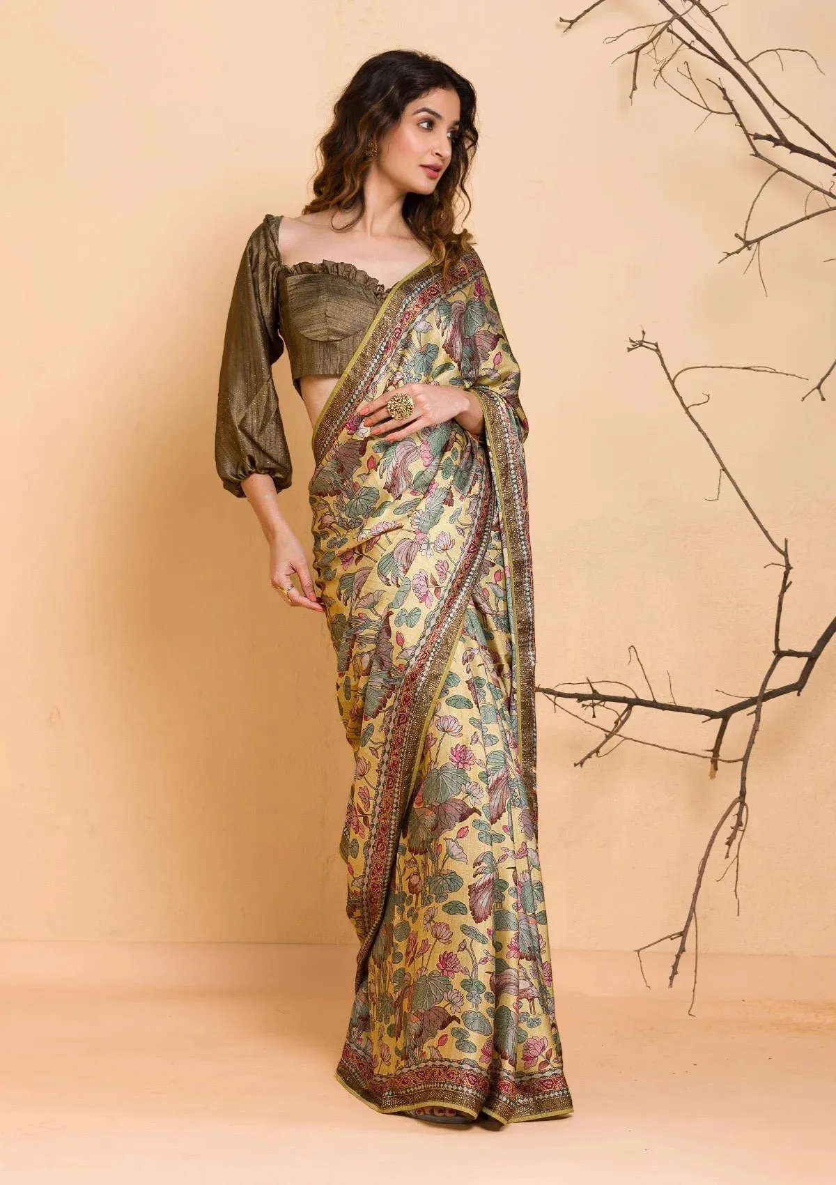 – The Saree is elevated with Floral Prints