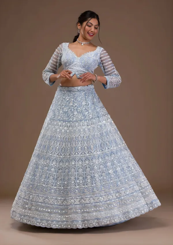 Pearlwork Net Readymade Lehenga
