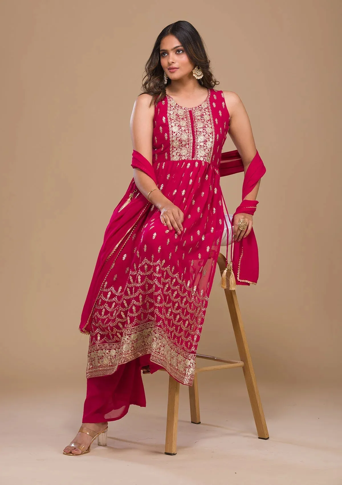 Rani Pink Zariwork Georgette Readymade Salwar Suit