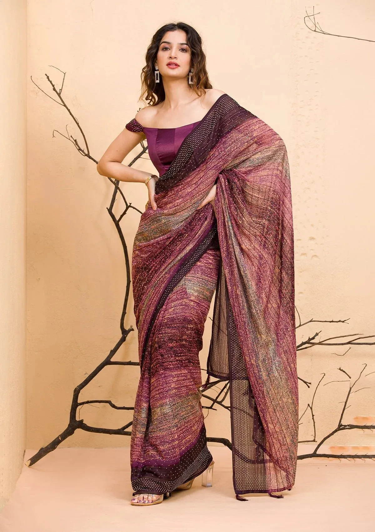 – Wine Saree in Chiffon fabric
