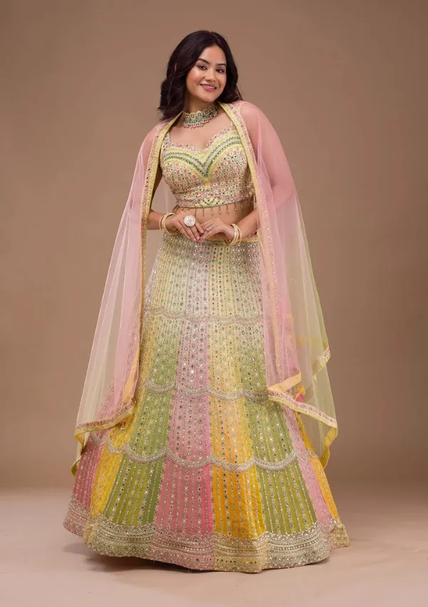 Yellow Mirrorwork Georgette Readymade Lehenga